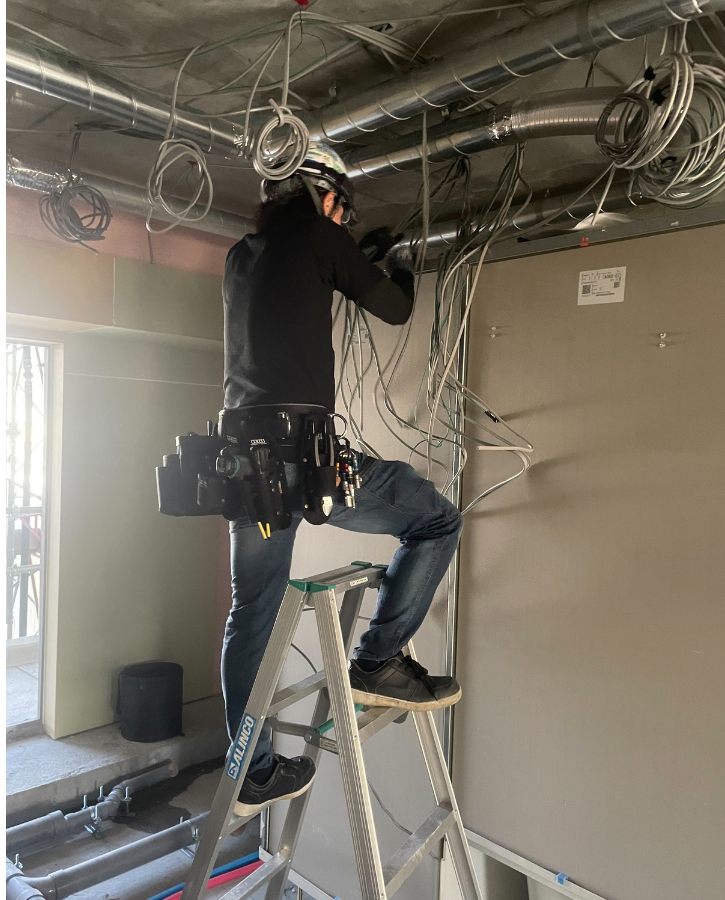 一般住宅や商業施設等の電気工事、鉄道の信号システム工事を行っています。具体的には、人の転落を検知するセンサーや、主要駅で多く見られる転落防止柵(ホームドア)など、それらを正しく作動させるための電気工事を行います。